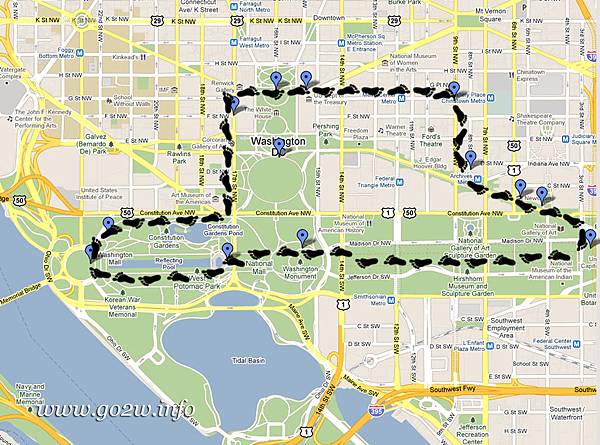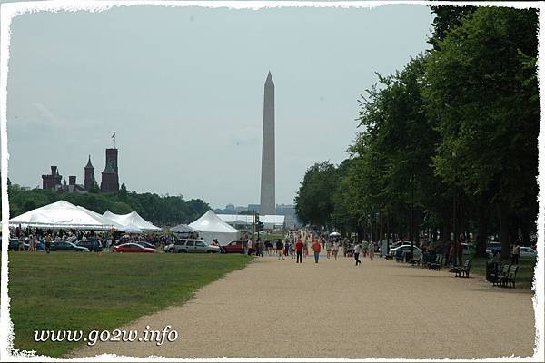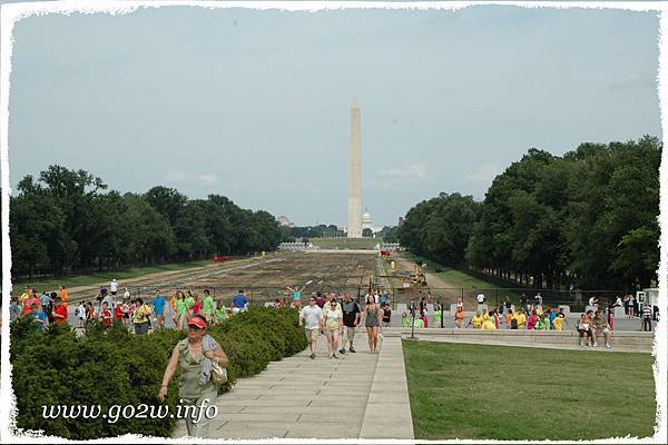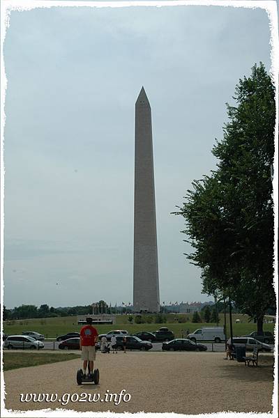 接著我們要穿過國家廣場,朝著華盛頓紀念碑的方向走。遠遠的就看到華盛頓紀念碑(Washington Monument)和我們招手。一路上不時有路人以羨慕的眼光看我們,因為騎著賽格威比他們用走的輕鬆多了!
