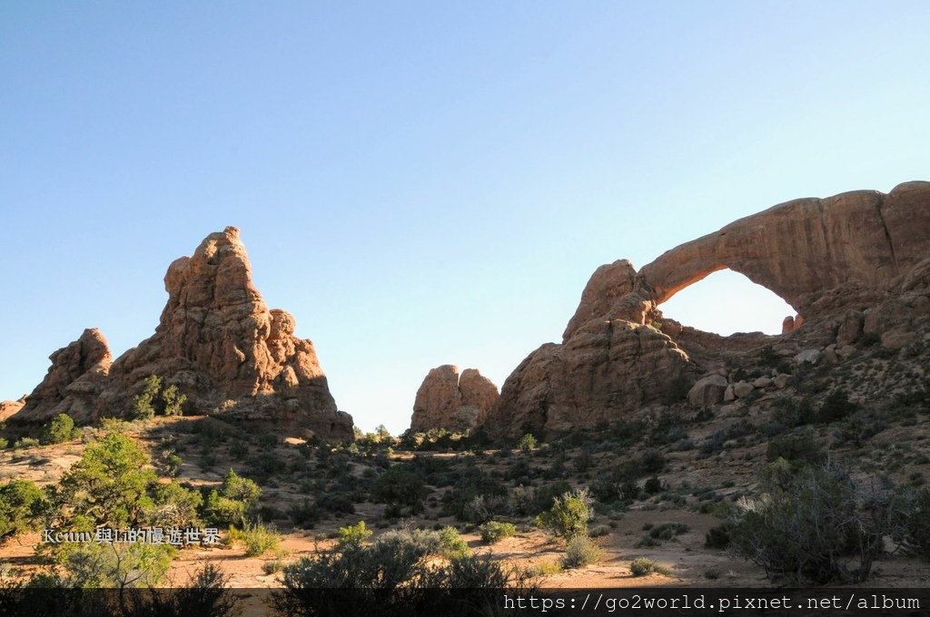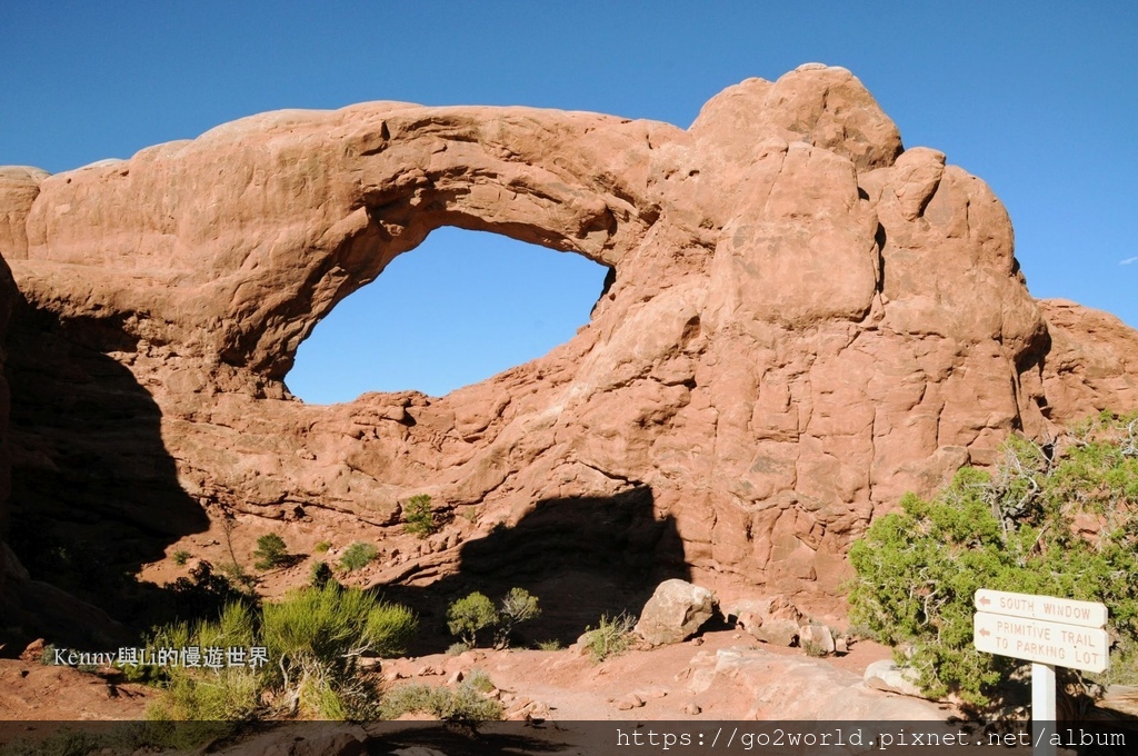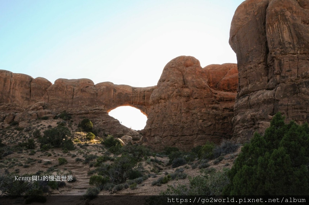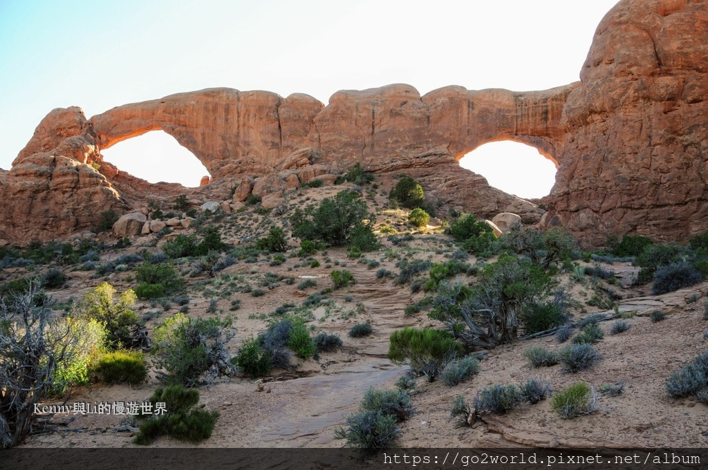 建議路線是走回南窗,接原始環形步道(Primitive Loop Trail),從南窗繞到後面,在這裡可以清楚的看到南北窗並列一起,形狀有如眼鏡一般,可千萬不要錯過!