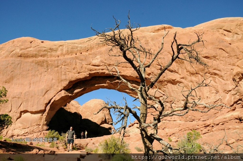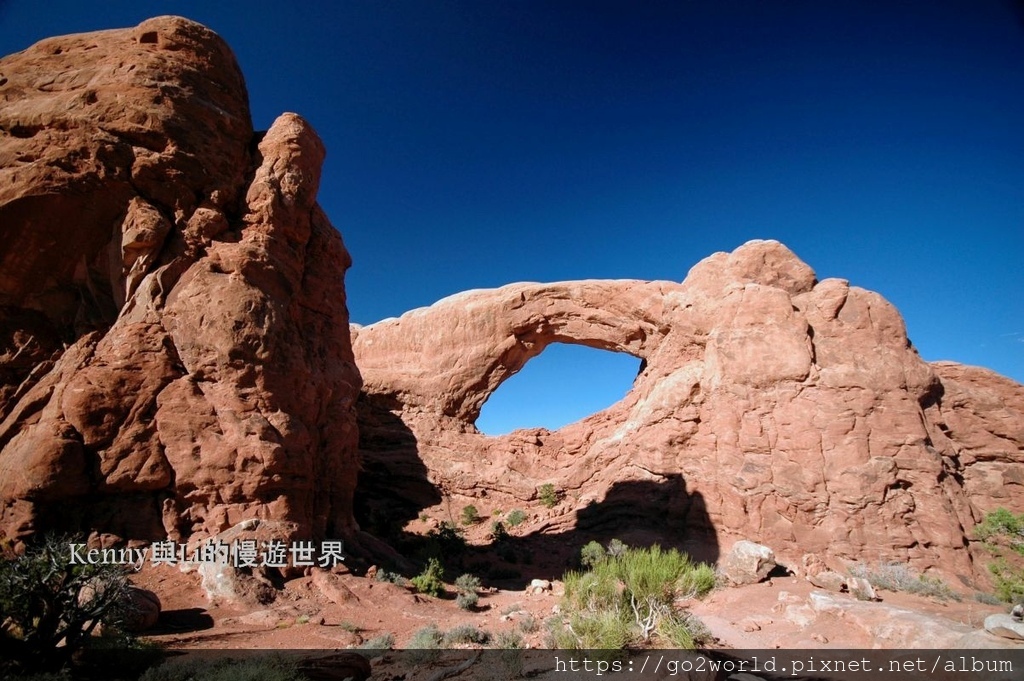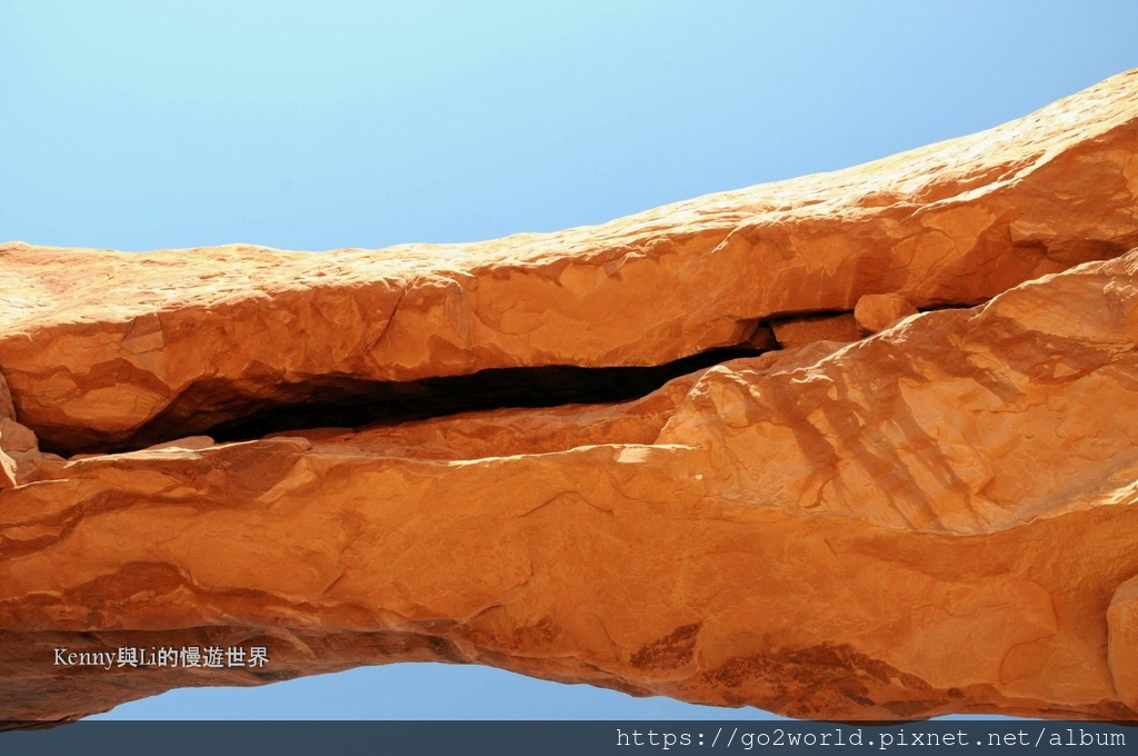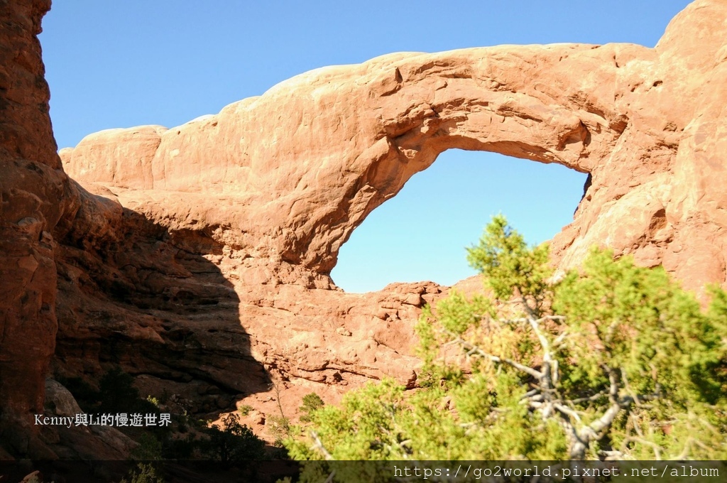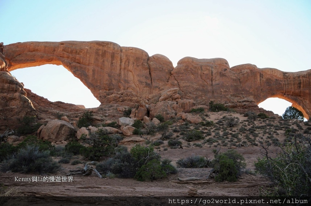 建議路線是走回南窗,接原始環形步道(Primitive Loop Trail),從南窗繞到後面,在這裡可以清楚的看到南北窗並列一起,形狀有如眼鏡一般,可千萬不要錯過!
