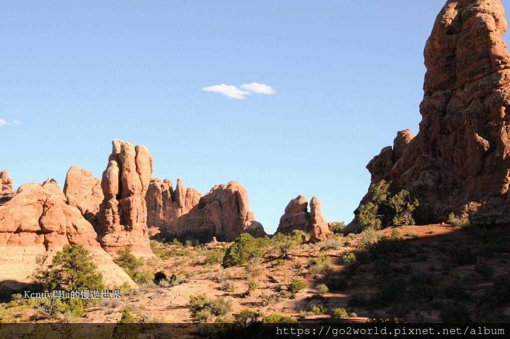 其實這裡的原始步道 (Primitive Trail) 不難走,一路有些小坡度,還有地方沒明顯的步道,就是一片沙地草原,雖然比前面的石窗步道稍微遠一點,但是這裡的景色是非常值回票價!