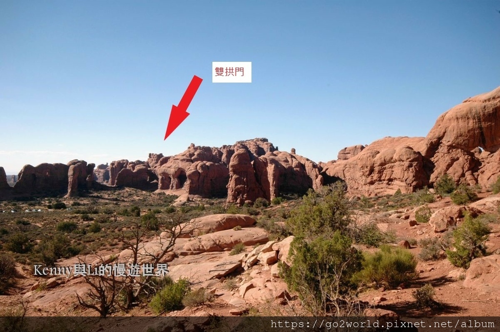 如果還有時間,可以橫跨停車場到對面,繼續走雙拱門步道 (Double Arch Trail)