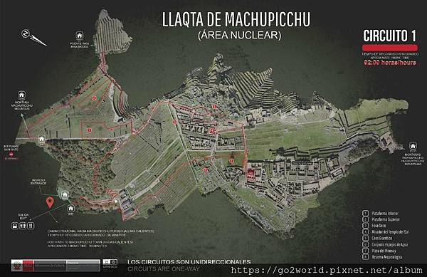 馬丘比丘分為五條路線(Circuits),可從原先官方網站的首頁下方,下載各條路線地圖,比較清楚。Circuit 5 就不用下載了,那是專門給走印加步道的團體票。