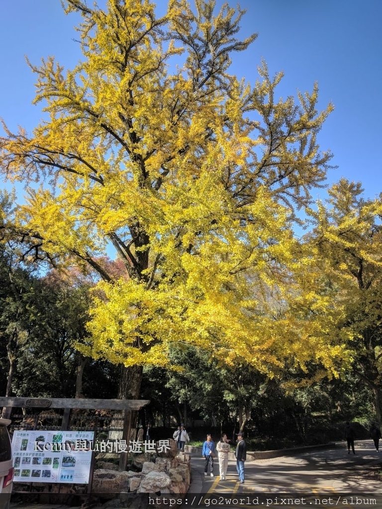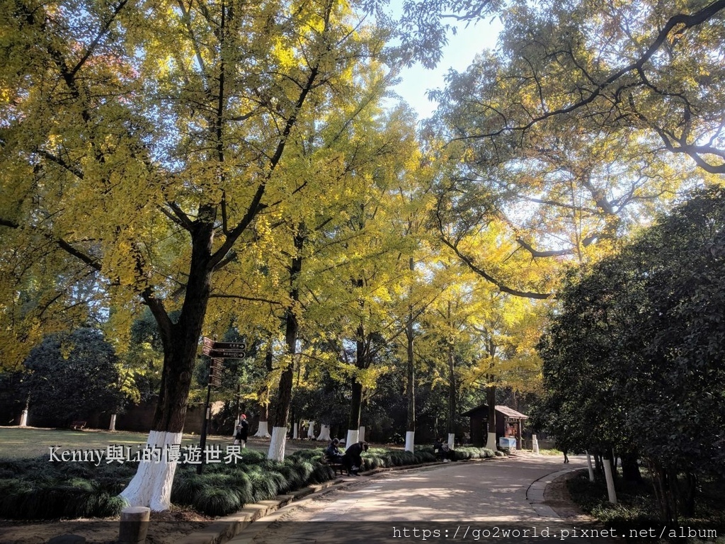 接著往東,朝靈谷寺的方向走,一排銀杏的葉子已經變黃了,走在這條銀杏步道很舒服。