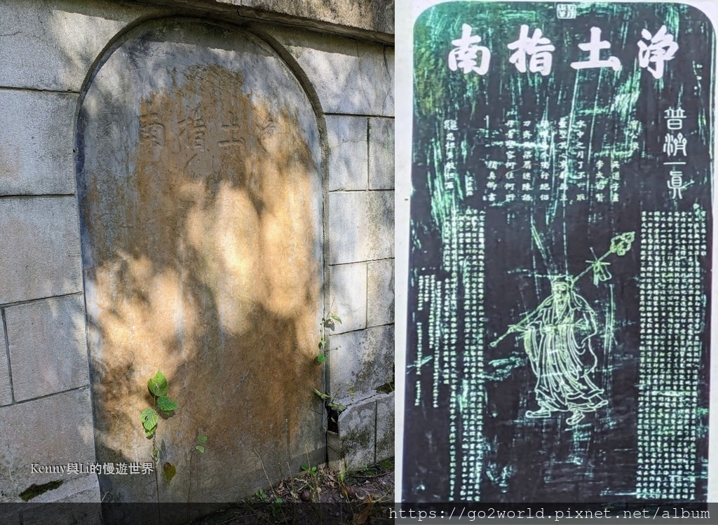 下圖右是「三絕碑」的拓版,與左圖比對只能認出「淨土指南」四個大字。